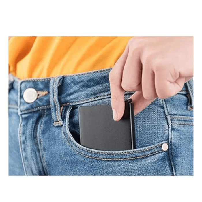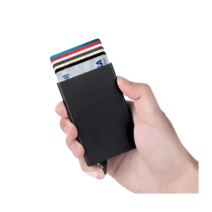 A l'aide d'une simple pression sur le bouton d'éjection, vous accédez à vos cartes rapidement et d'un simple geste. Vos cartes de crédits, débits et autres restent protégés grâce au boitier en métal.